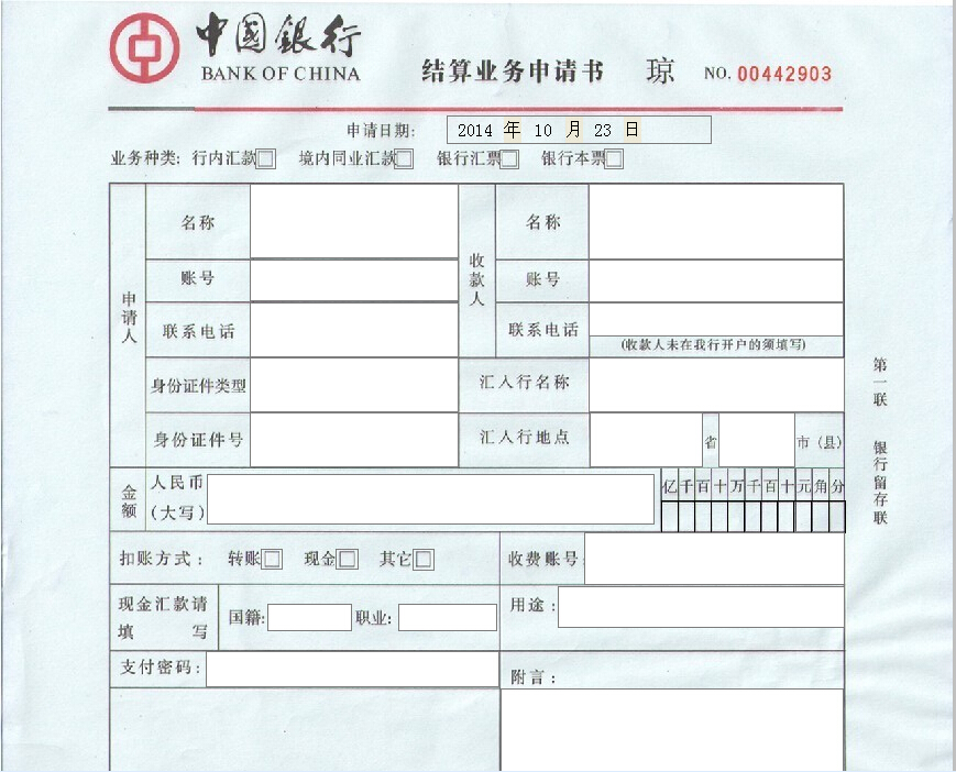 中国银行业务结算申请书打印模板