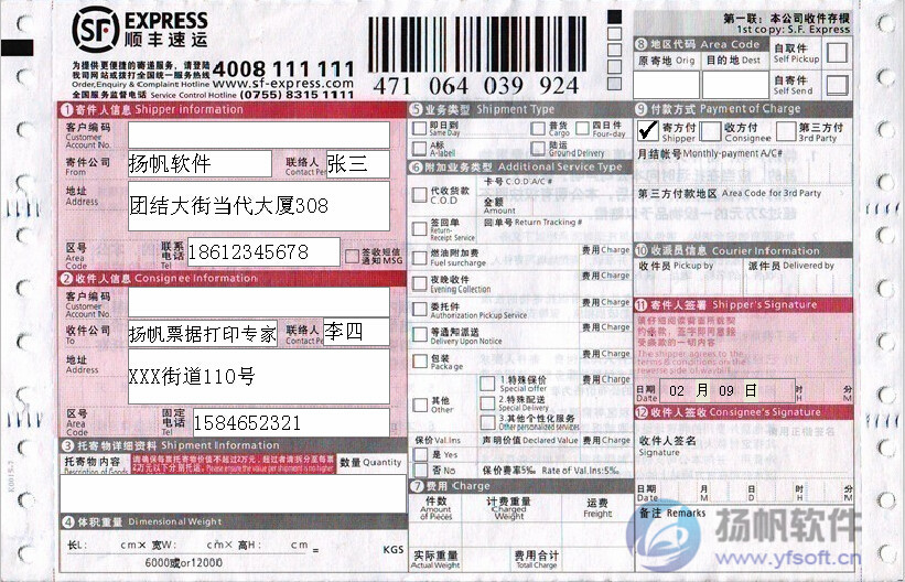 今天上午,一位我们扬帆票据打印专家的用户向我们求助,说新的顺丰快递单出来了,请我们帮忙制作模板,随后我们详细询问了这张快递单的实际大小和需要填写的快递单项目,并且索要了扫描图,然后就开始马不停蹄的制作中。最后,模板终于制作好了,客户表示很满意,对我们表示感谢。