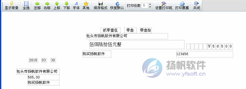 2、有存根的票据模板要调整好打印机挡板的位置,不然会出现角分打印不上的情况。
