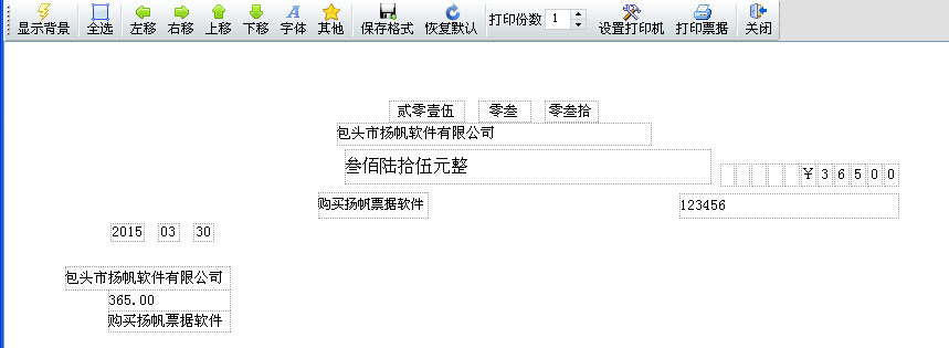 2、有存根的票据模板要调整好打印机挡板的位置,不然会出现角分打印不上的情况。