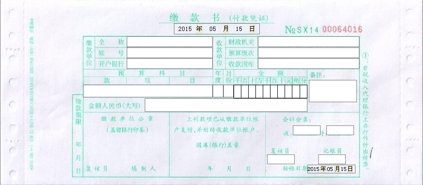 缴款书打印模板