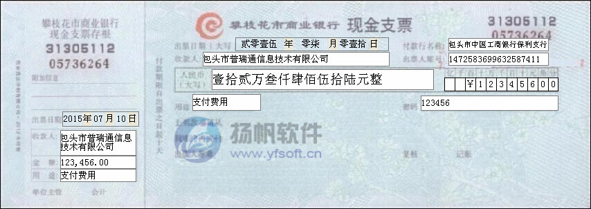 支票号码、出票日期、收款人、付款人、金额大写、金额小写、用途、密码等项目。